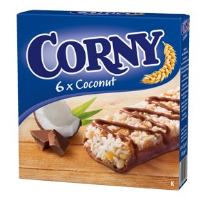 Ingredients Milk chocolate (sugar, cocoa liquor, cocoa butter, powdered skimmed milk, butterfat, sunflower lecithin) 24%, baked coconut flakes 16%, glucose-fructose syrup, baked wholemeal cereal flakes (oats 11%, wheat 2%), dried cereal grains (flour 8%, sugar, rice flour 1%, corn flour 1%, malted barley, salt, caramelised sugar syrup), glucose syrup, brown sugar, vegetable fat, corn flakes (corn 2%, sugar, salt, malt barley), salt, stabilisers: glycerol, emulsifiers: sunflower lecithin, natural flavourings.